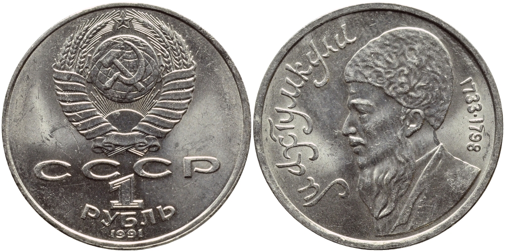 СССР 1 РУБЛЬ 1991 МАХТУМКУЛИ ФРАГИ (1733-1798) KM 283 медно-никель 4394-444