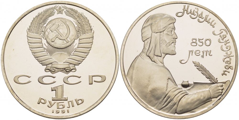 СССР 1 РУБЛЬ 1991 НИЗАМИ ГЯНДЖЕВИ, 850 ЛЕТ KM 284 медно-никель PROOF 1085-2-71