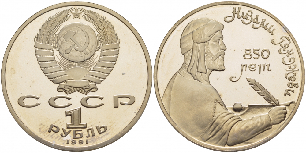 СССР 1 РУБЛЬ 1991 НИЗАМИ ГЯНДЖЕВИ, 850 ЛЕТ KM 284 медно-никель PROOF 1085-2-73