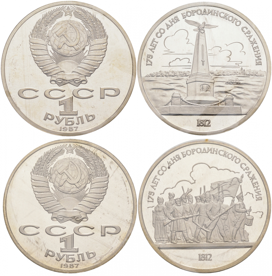 СССР лот из 2 монет по 1 рублю 1987 175 лет Бородинскому сражению, в запайке KM 203, 204 медно-никель PROOF M18-10