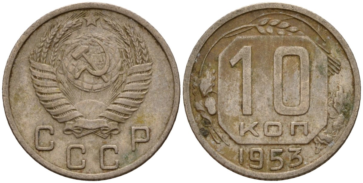 СССР 10 копеек 1953 Федорин 116 медно-никель 4158-268
