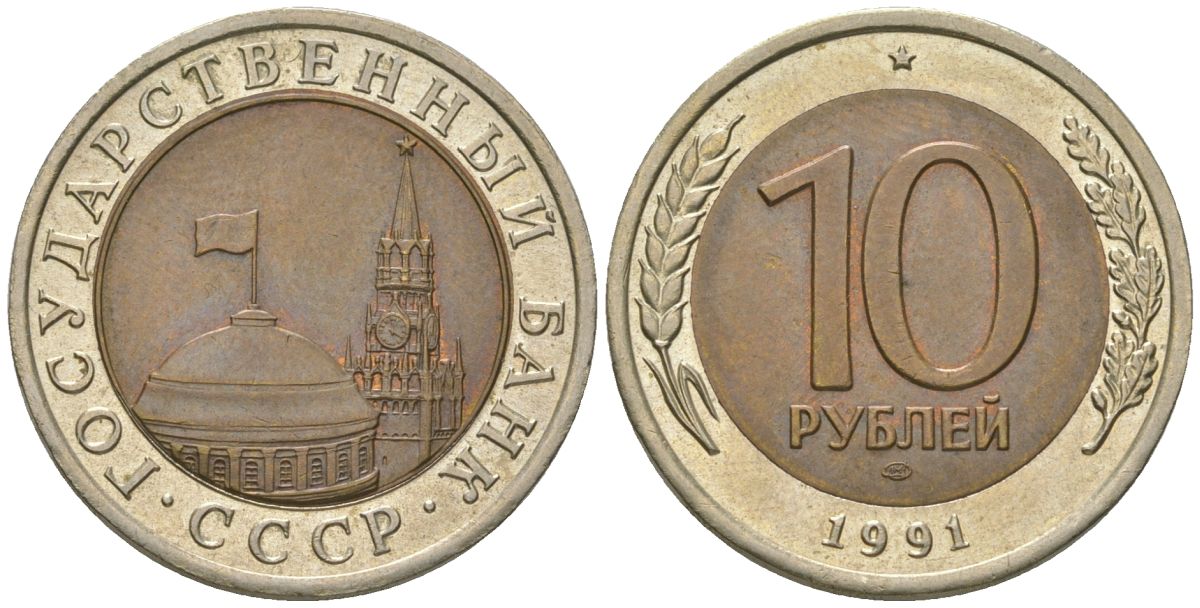СССР 10 рублей 1991 ЛМД, ГКЧП KM 295 биметалл 4605-811