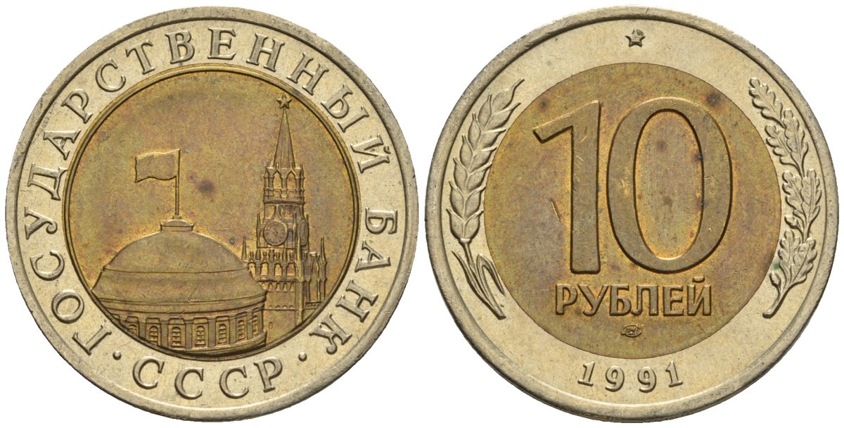 СССР 10 рублей 1991 ЛМД, ГКЧП KM 295, Федорин 15 биметалл 4126-735