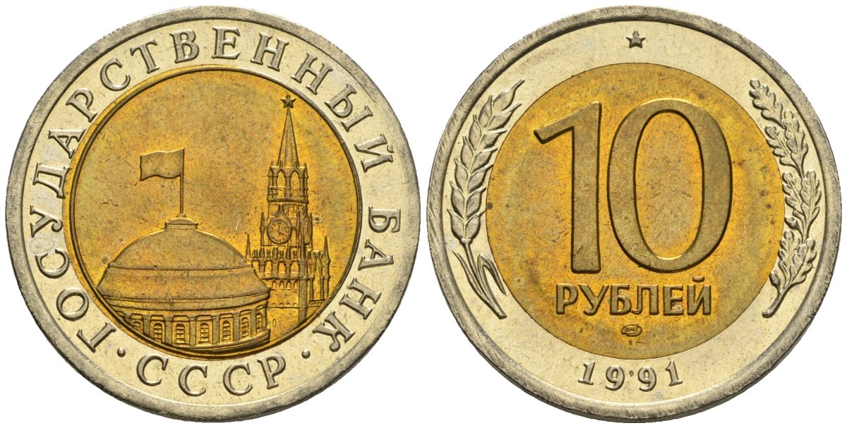 СССР 10 рублей 1991 ЛМД, ГКЧП KM 295, Федорин 15 биметалл 4132-1225