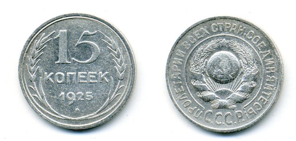 СССР 15 КОПЕЕК 1925 Федорин 19, КМ 87 серебро 54-742