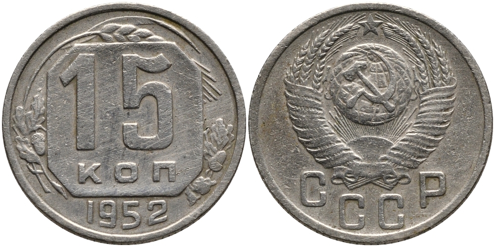 СССР 15 КОПЕЕК 1952 Федорин 118 KM 117 медно-никель 75-1444