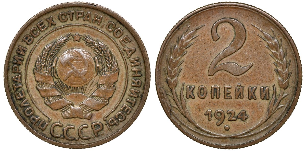 СССР 2 копейки 1924 Федорин 4 медь 4132-1126