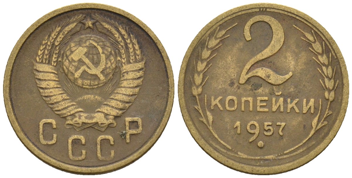 СССР 2 копейки 1957 Федорин 102 алюминиевая бронза 4189-658