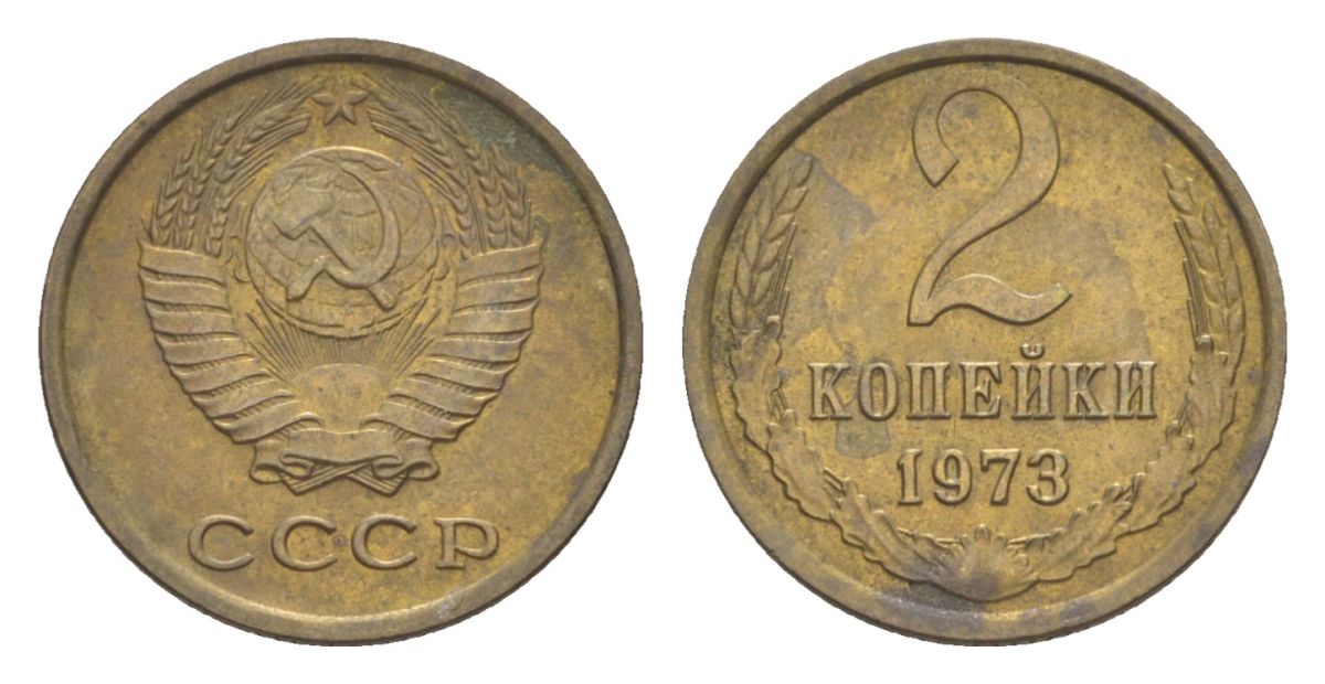СССР 2 копейки 1973 Y 127a латунь 4630-137