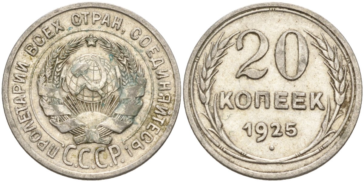 СССР 20 копеек 1925 Федорин 10 серебро 4146-1151
