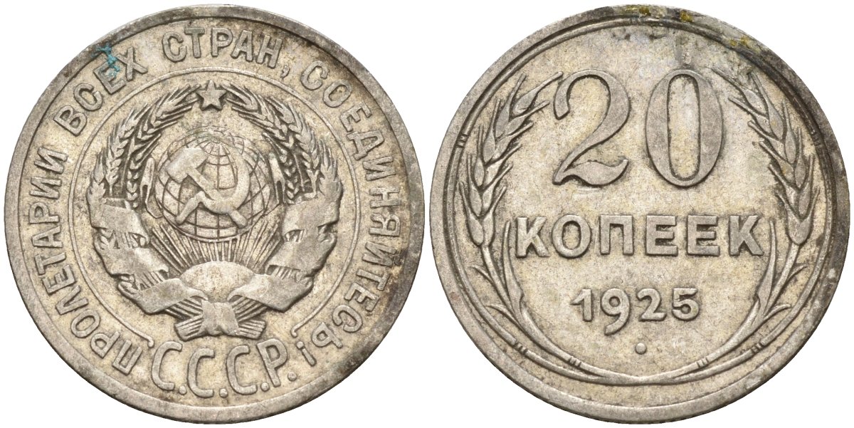 СССР 20 копеек 1925 Федорин 10 серебро 4146-1245
