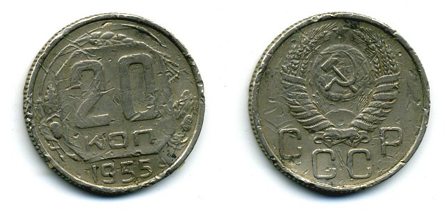 СССР 20 КОПЕЕК 1955 Федорин 103, КМ 118 медно-никель 26-738