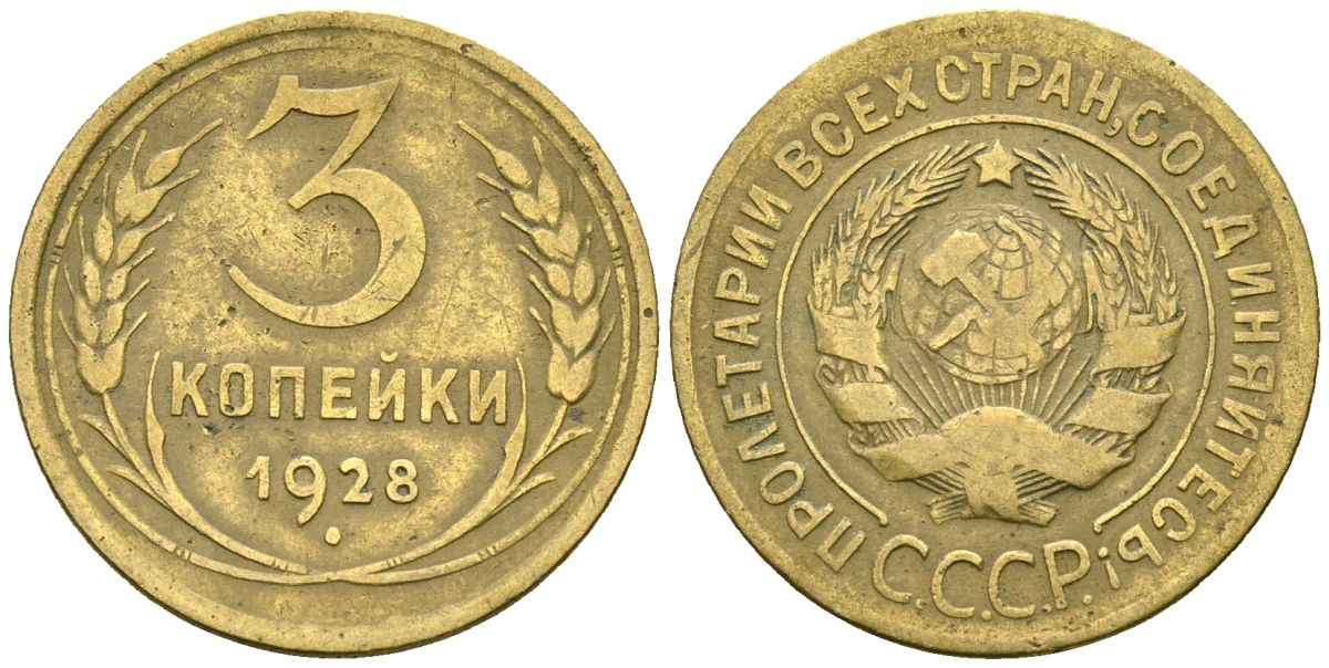 СССР 3 копейки 1928 Федорин 16 алюминиевая бронза 4176-717