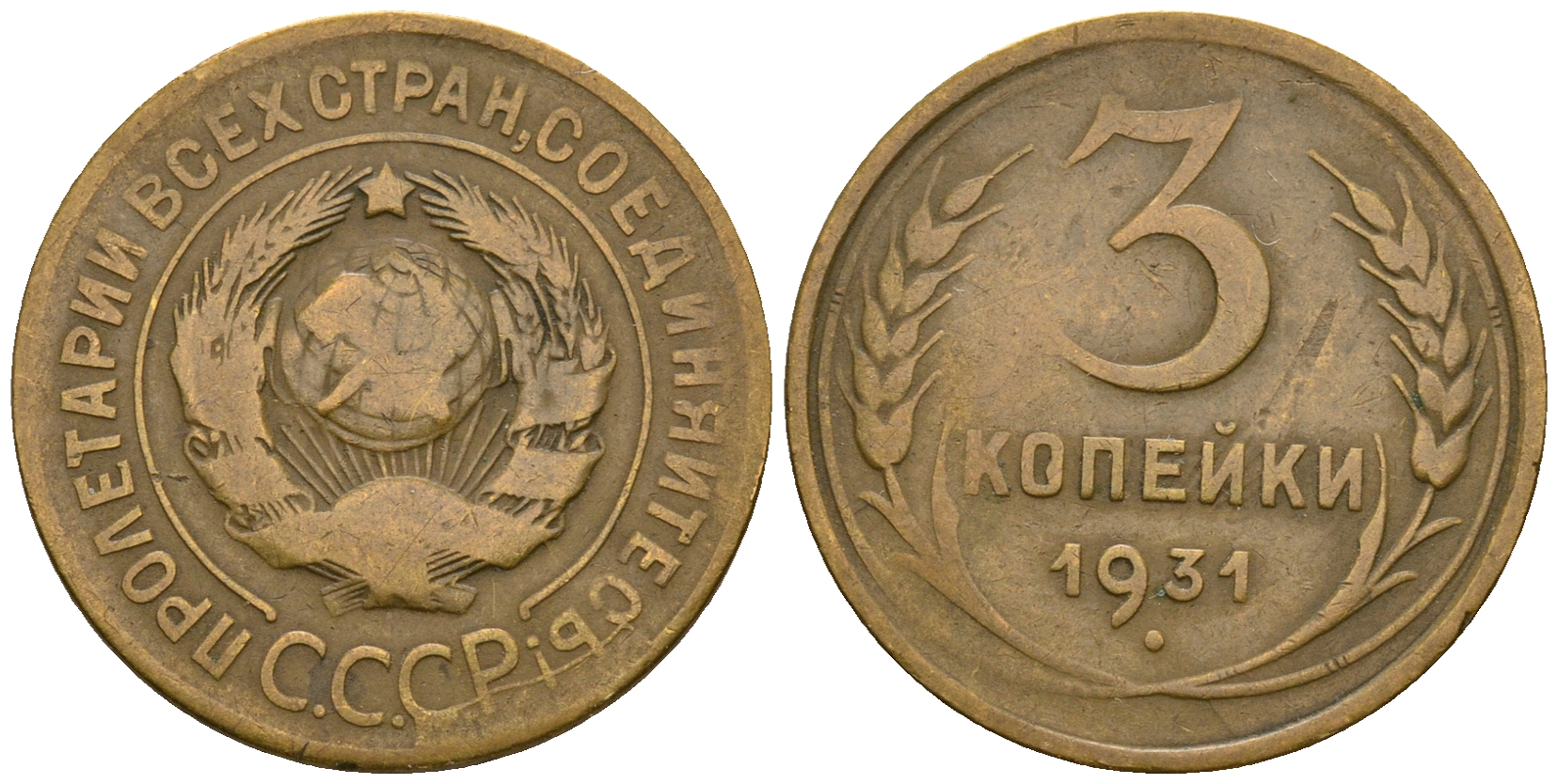 СССР 3 копейки 1931 KM 93, Федорин 22 алюминиевая бронза 51-1746