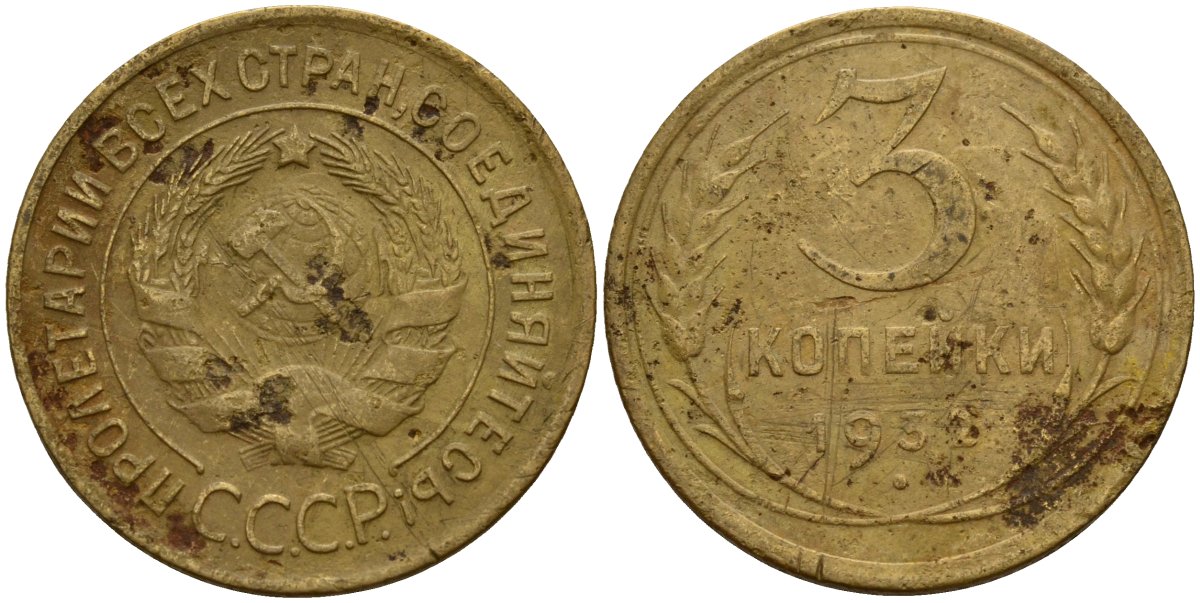 СССР 3 копейки 1932 Федорин 25 алюминиевая бронза 4159-127