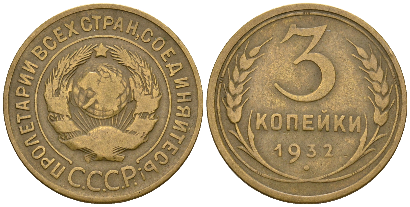 СССР 3 копейки 1932 KM 93, Федорин 25 алюминиевая бронза 51-2122