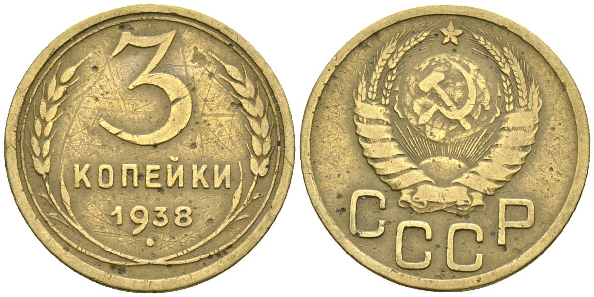 СССР 3 копейки 1938 Федорин 54 алюминиевая бронза 4176-756