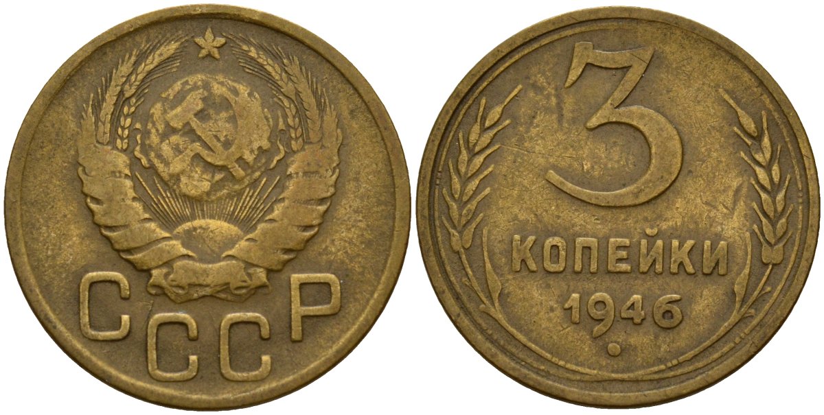 СССР 3 копейки 1946 Федорин 85 алюминиевая бронза 4159-154