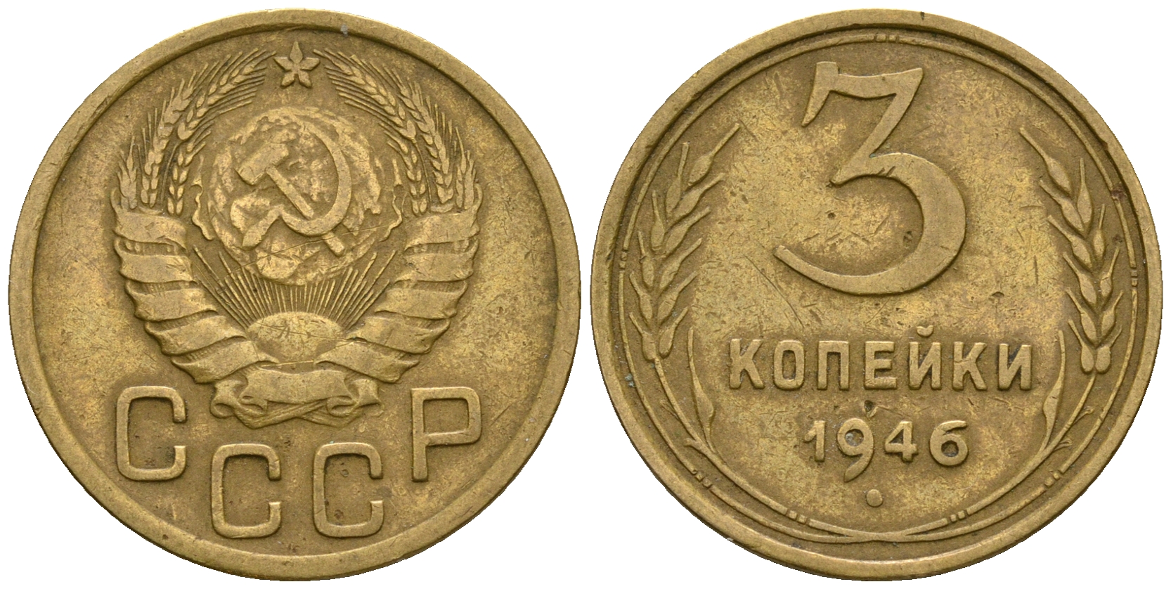 СССР 3 копейки 1946 KM 107, Федорин 85 алюминиевая бронза 4575-731