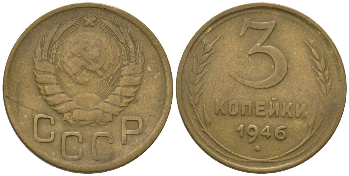 СССР 3 копейки 1946 Y 107, Schon 56 алюминиевая бронза 4605-1022