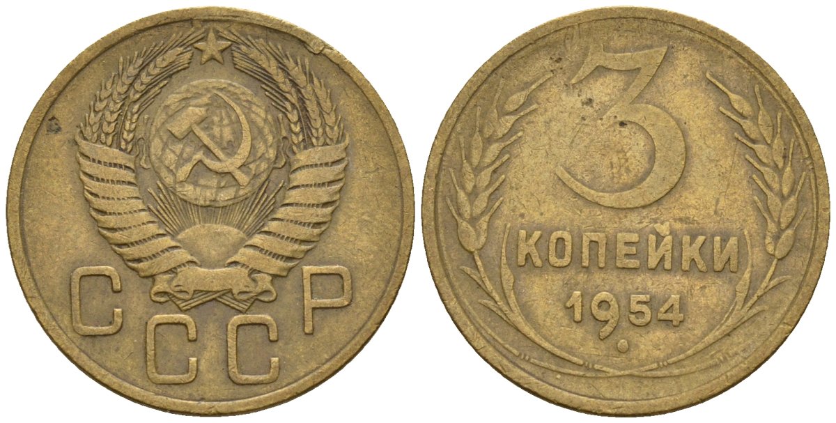 СССР 3 копейки 1954 Федорин 131 алюминиевая бронза 4146-654