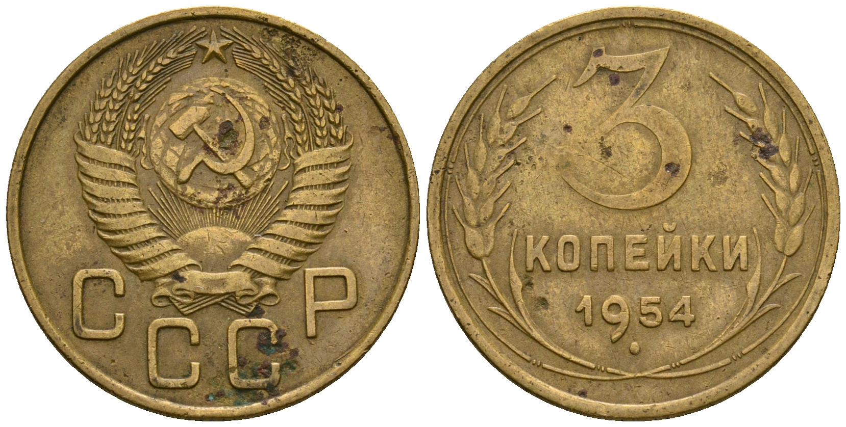 СССР 3 копейки 1954 KM 114, Федорин 131 алюминиевая бронза 4606-831