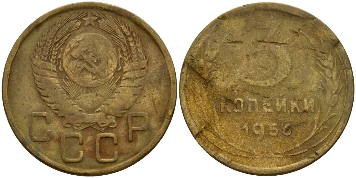 СССР 3 копейки 1956 Федорин 134 алюминиевая бронза 4159-321