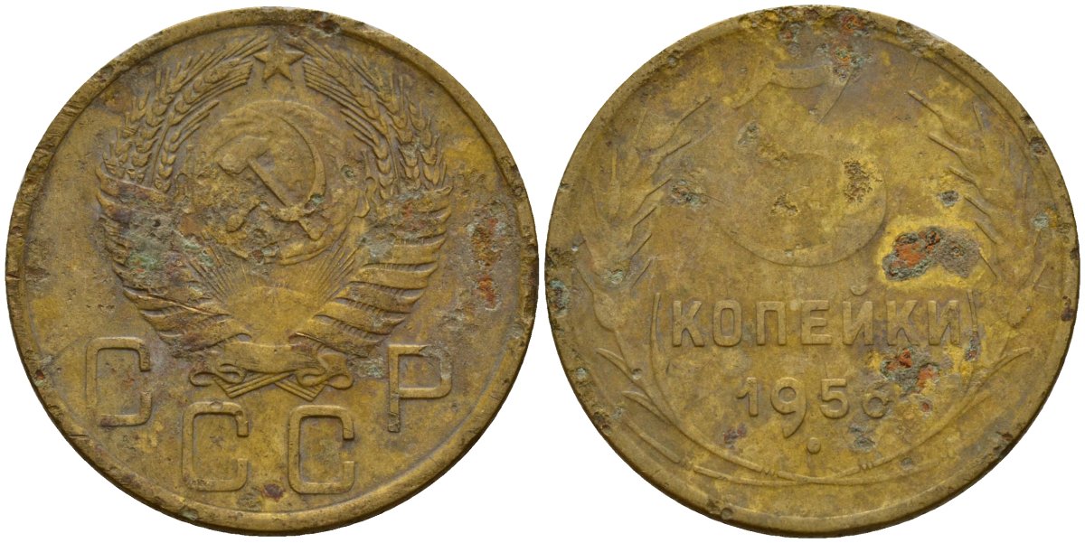 СССР 3 копейки 1956 Федорин 134 алюминиевая бронза 4159-324