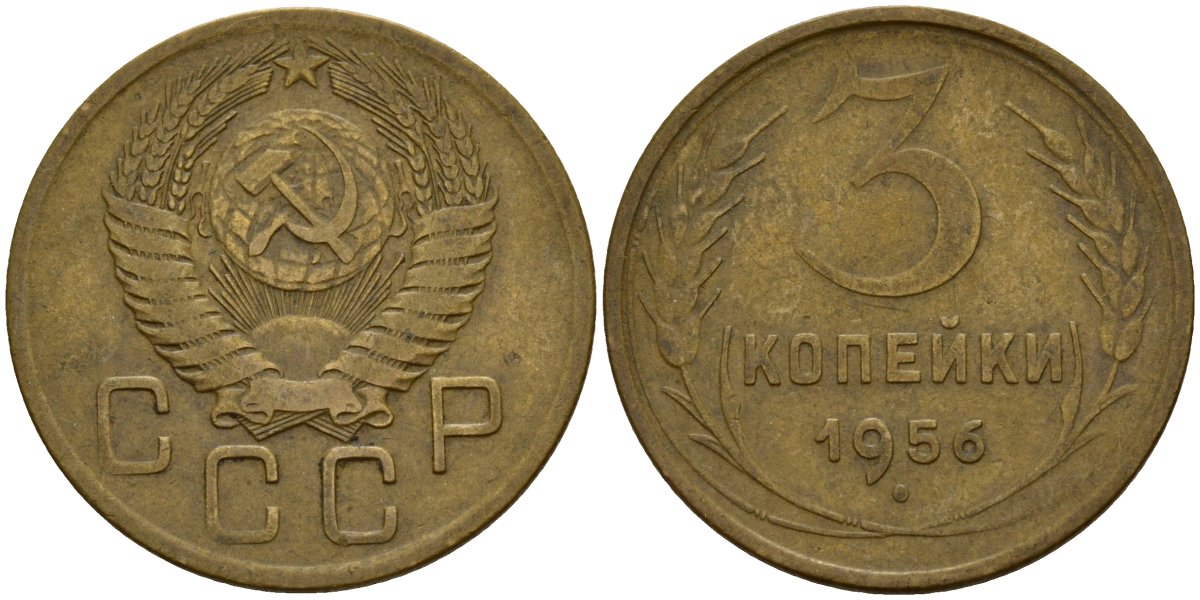 СССР 3 копейки 1956 Федорин 134 алюминиевая бронза 4159-333