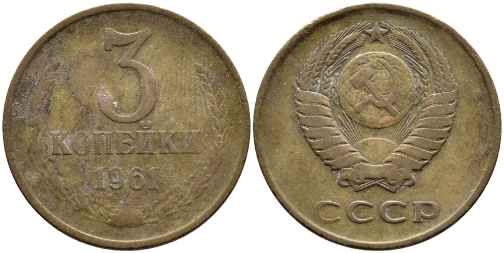 СССР 3 КОПЕЙКИ 1961 Федорин 140 KM 128а алюминиевая бронза 4393-931