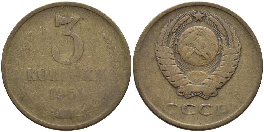 СССР 3 КОПЕЙКИ 1961 Федорин 140 KM 128а алюминиевая бронза 95-855