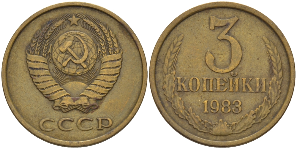 СССР 3 КОПЕЙКИ 1983 Федорин 196 KM 128a алюминиевая бронза 98-1221