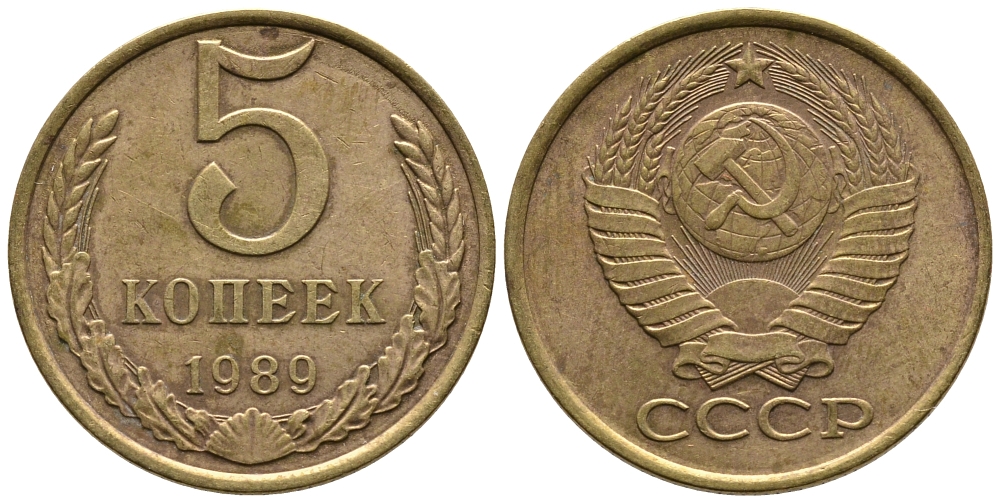 СССР 5 КОПЕЕК 1989 ФЕДОРИН 141, ЛМД KM 129а медно-цинковый сплав 3999-435