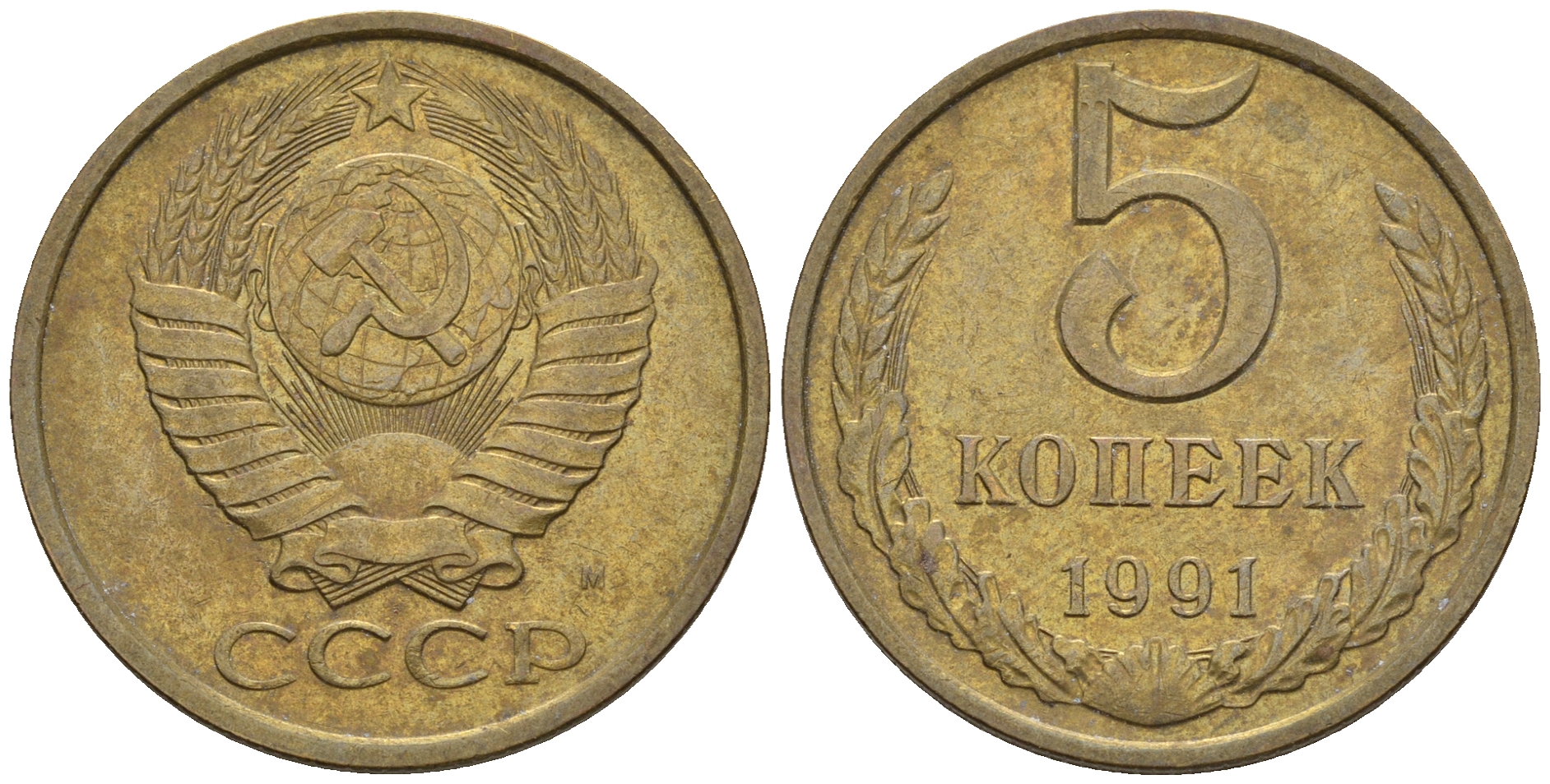 СССР 5 КОПЕЕК 1991 М (ММД) Y 129a, Ф. № 147 алюминиевая бронза 26-1515