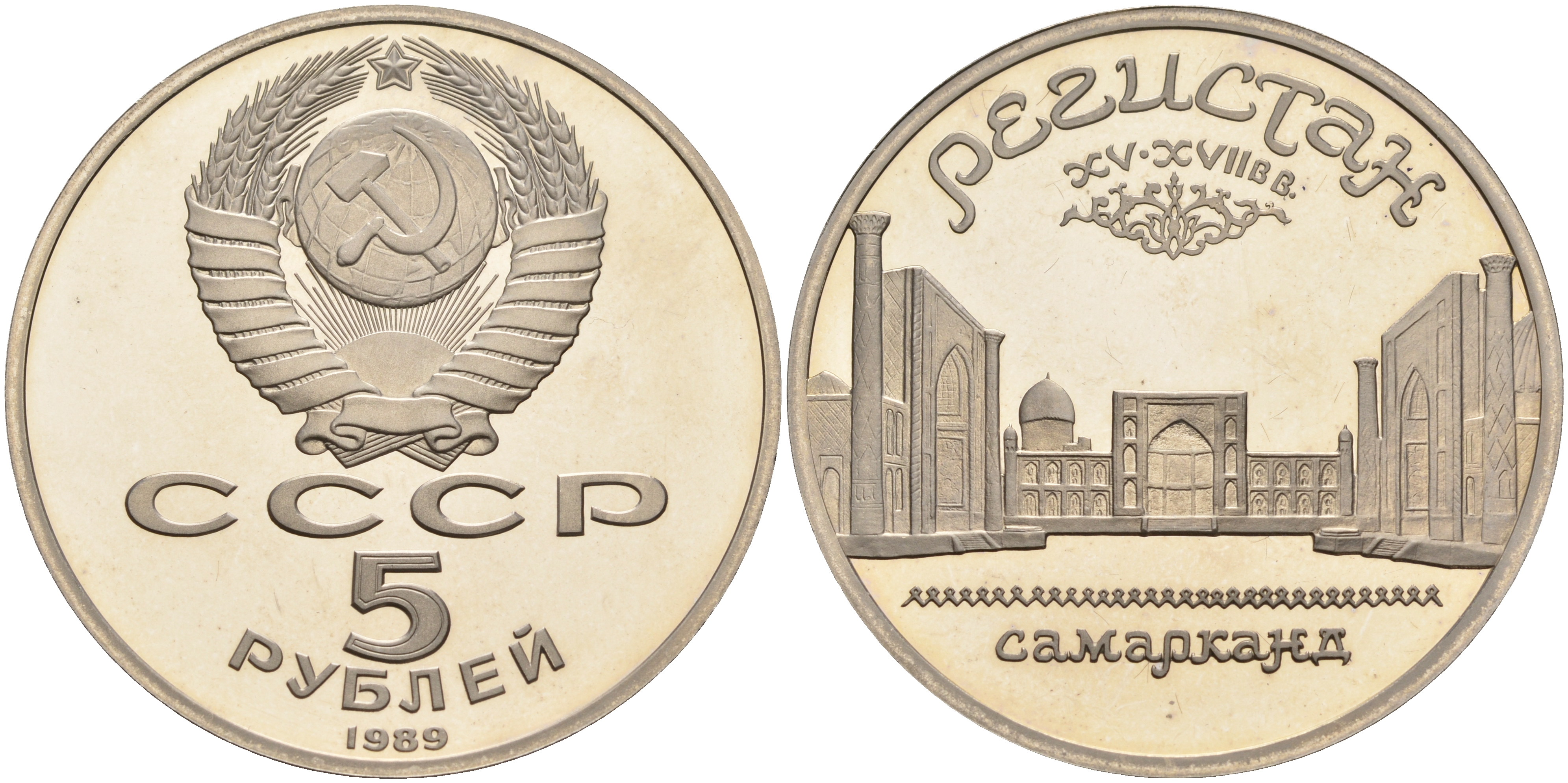 СССР 5 рублей 1989 Ансамбль Регистан в Самарканде KM 229 медь никель цинк PROOF 1066-4-53