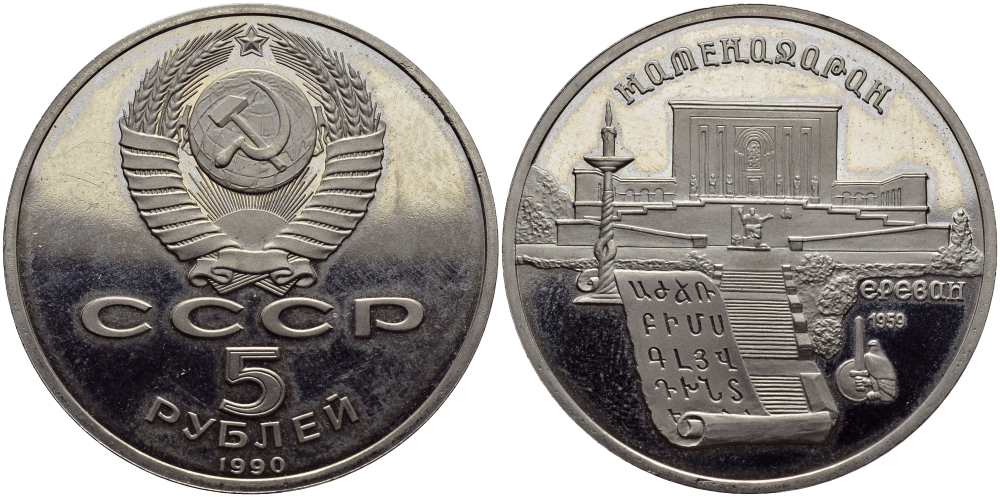 СССР 5 РУБЛЕЙ 1990 МАТЕНАДАРАН В ЕРЕВАНЕ KM 259 медно-никель PROOF 1515-642