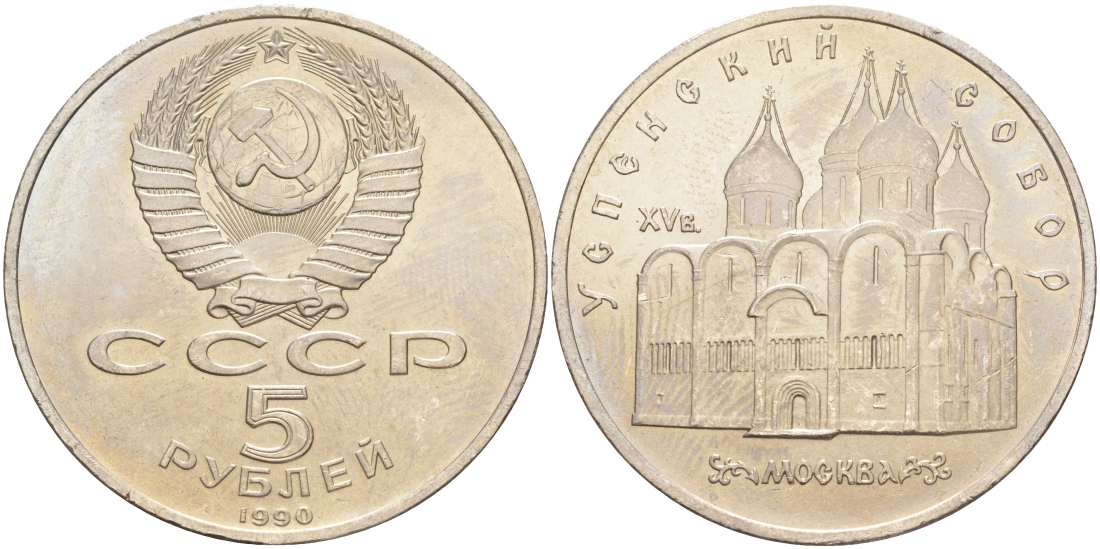 СССР 5 РУБЛЕЙ 1990 УСПЕНСКИЙ СОБОР KM 246 медно-никель 73-525