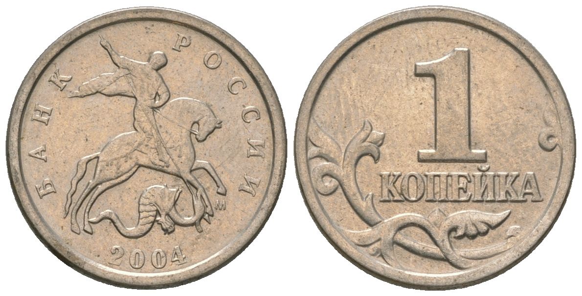 Россия 1 копейка 2004 ММД KM 600 сталь плакированная медно-никелем 4588-934