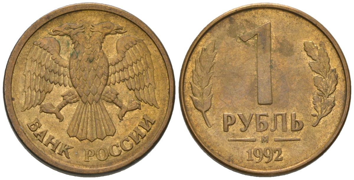 Россия 1 рубль 1992 ММД KM 311 сталь плакированная латунью 187-246