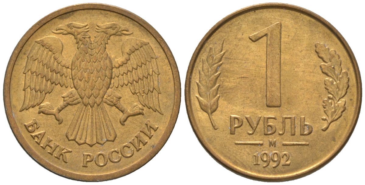 Россия 1 рубль 1992 ММД KM 311 сталь плакированная латунью 4585-516