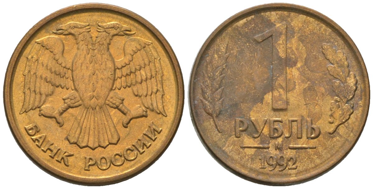 Россия 1 рубль 1992 ММД KM 311 сталь плакированная латунью 4585-613