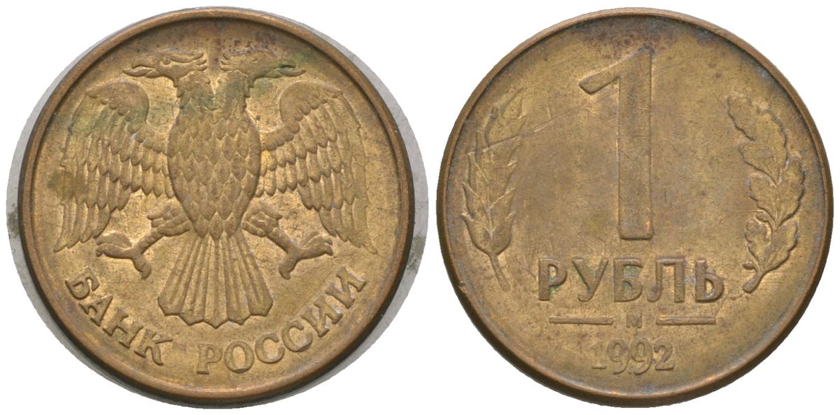 Россия 1 рубль 1992 ММД KM 311 сталь плакированная латунью 4585-714