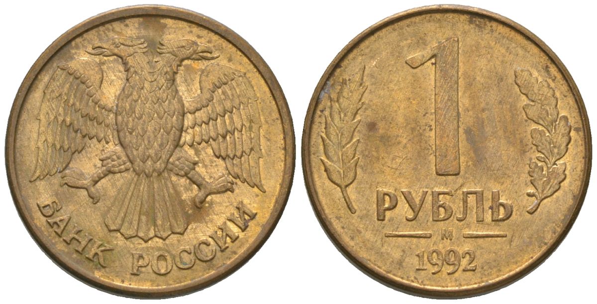 Россия 1 рубль 1992 ММД KM 311 сталь плакированная латунью 4585-748