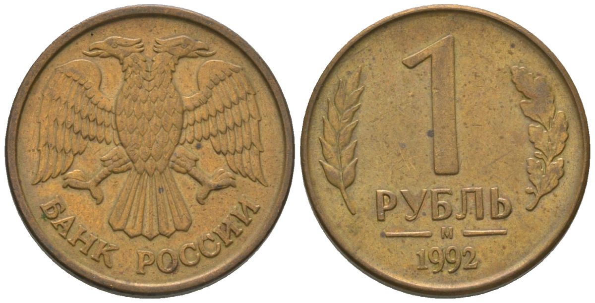 Россия 1 рубль 1992 ММД KM 311 сталь плакированная латунью 4585-753
