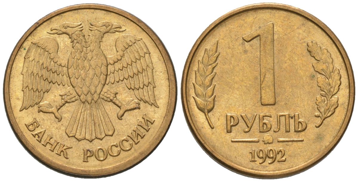 Россия 1 рубль 1992 монограмма ММД KM 311 сталь плакированная латунью 116-1138