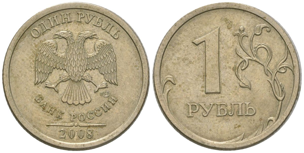 Россия 1 рубль 2008 СПМД KM 833 медно-никель 4594-733