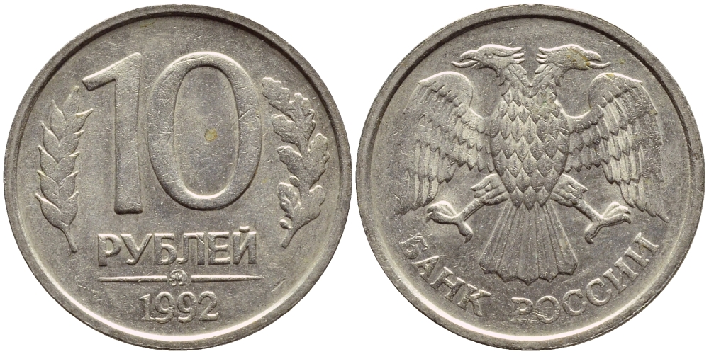 РОССИЯ 10 РУБЛЕЙ 1992 ММД KM 313, Федорин 3 медно-никель 4395-115