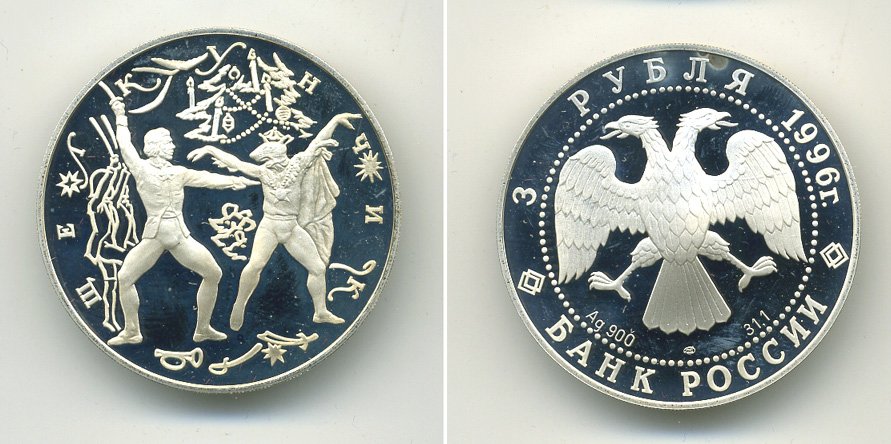 РОССИЯ 3 РУБЛЯ 1996 ЩЕЛКУНЧИК, МЫШИНЫЙ КОРОЛЬ KM 483 серебро PROOF 417-533