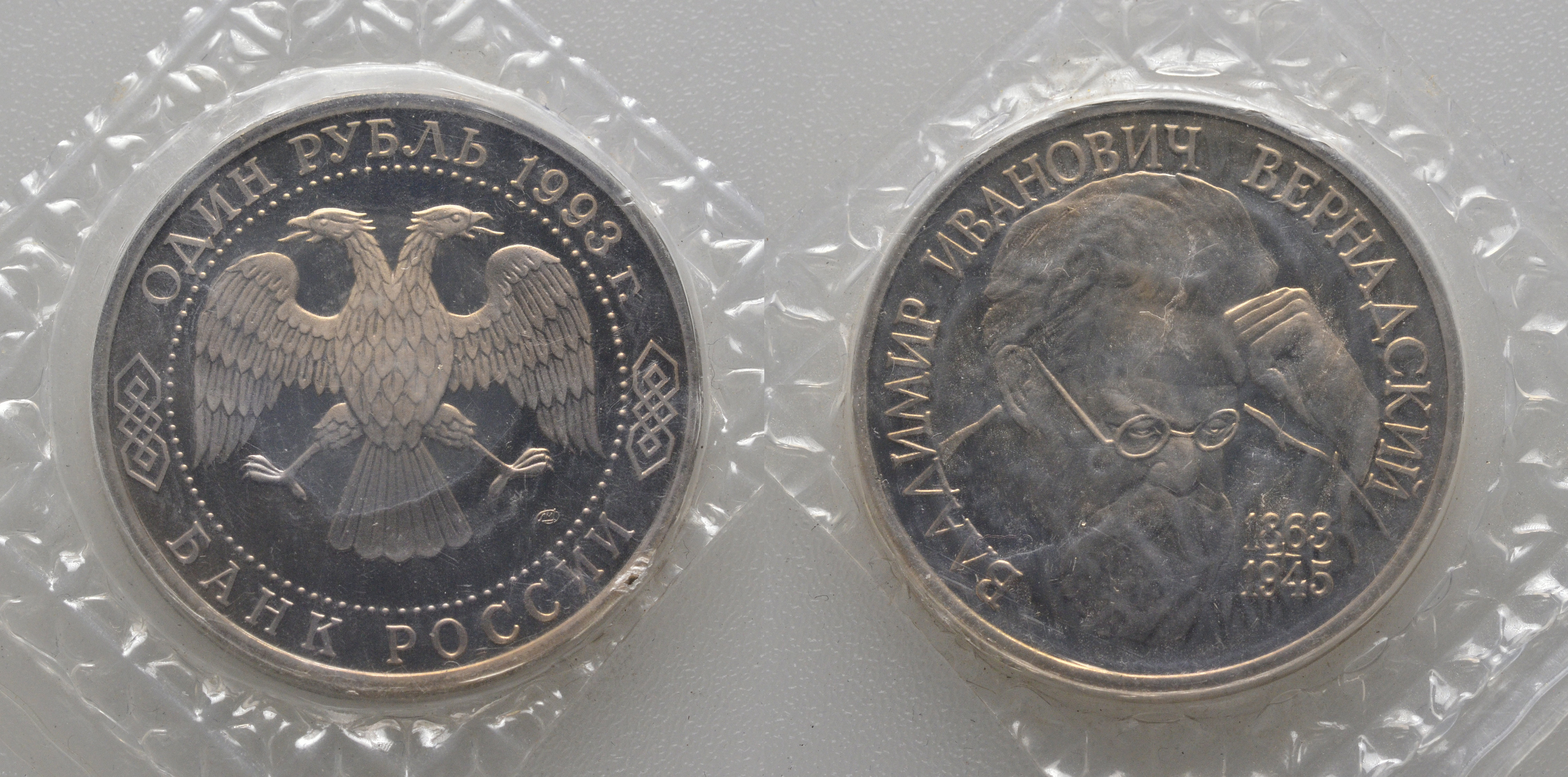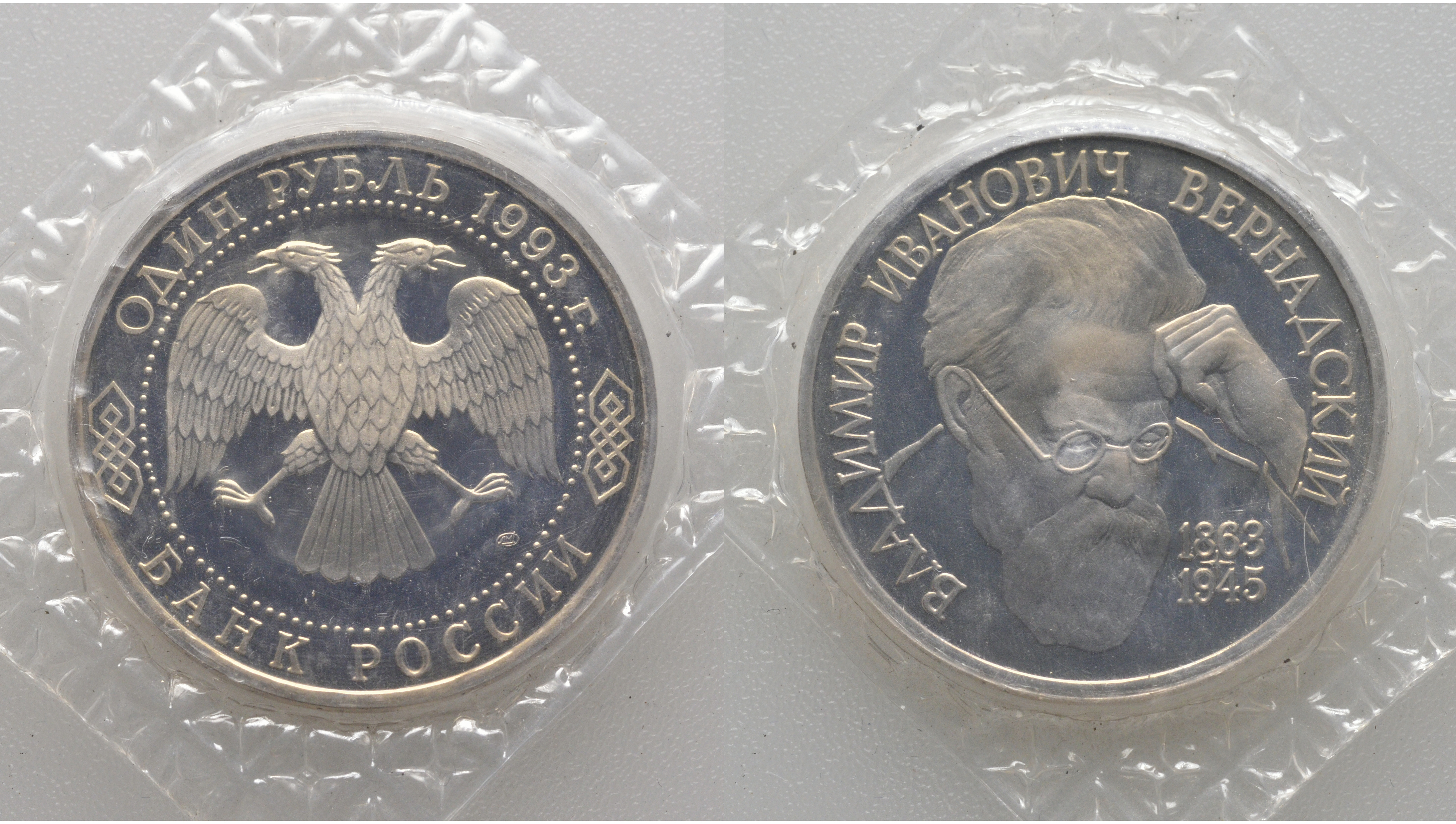 Россия 1 рубль 1993 ЛМД, 130 лет со дня рождения В.И. Вернадского, в запайке KM 319 медно-никель PROOF AUC1-1-33