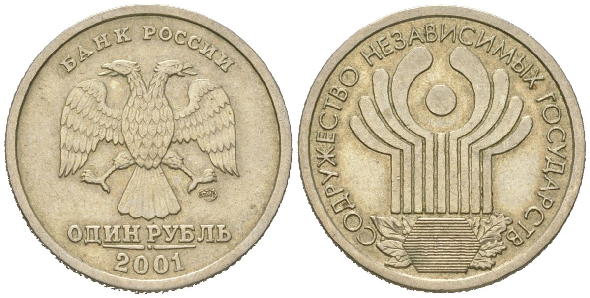 Россия 1 рубль 2001 СПМД, 10 лет Содружеству Независимых Государств Y 731 медно-никель 4613-128